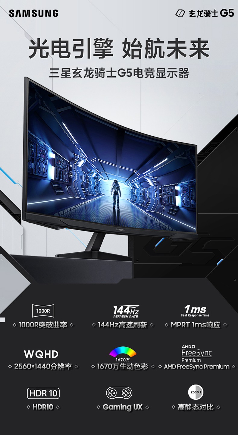 27英寸2K电竞144HZ曲面1000R游戏电竞电脑显示器